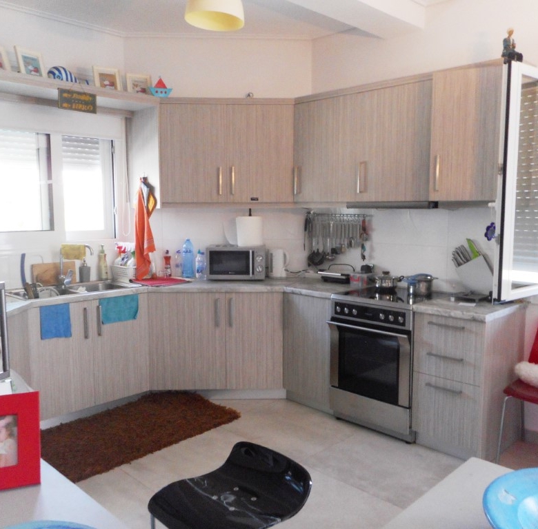Πωλείται εξαιρετικό οροφοδιαμέρισμα 106,5 τ.μ., το οποίο καταλαμβάνει τον όροφο καλαίσθητης διώροφης μονοκατοικίας. Το ακίνητο διαθέτει τρία ευρύχωρα υπνοδωμάτια, λειτουργική κουζίνα, άνετο σαλόνι, ένα πλήρες μπάνιο και ένα WC, προσφέροντας ιδανική διαρρύθμιση για άνετη και ποιοτική διαβίωση. Οι μεγάλες βεράντες χαρίζουν φωτεινότητα και αίσθηση ελευθερίας, ενώ η ύπαρξη ιδιωτικού πάρκινγκ εξασφαλίζει πρακτικότητα και ευκολία. Το διαμέρισμα διαθέτει ατομική θέρμανση, αποθήκη για πρόσθετο χώρο οργάνωσης, καθώς και κουφώματα αλουμινίου με σίτες που συνδυάζουν ανθεκτικότητα και άνεση.