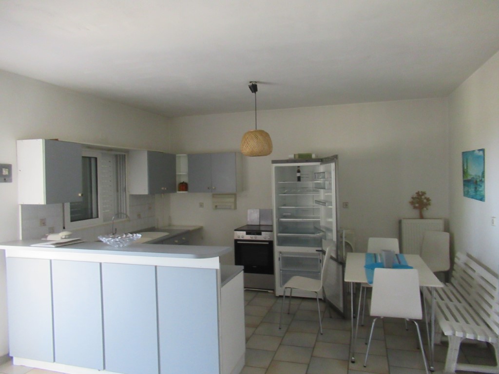 Πωλείται υπερυψωμένο ισόγειο αμφιθεατρικής κατασκευής, συνολικής επιφάνειας 80 τ.μ., σε οικόπεδο 210 τ.μ. Το ακίνητο αποτελείται από ενιαίο χώρο καθιστικού-κουζίνας, δύο άνετα υπνοδωμάτια και ένα μπάνιο. Διαθέτει καλοριφέρ, τζάκι, κλιματιστικό (A/C) και εξωτερικό χώρο με BBQ, ιδανικό για στιγμές χαλάρωσης και φιλοξενίας. Βρίσκεται σε απόσταση μόλις 3.000 μέτρων από τη θάλασσα, προσφέροντας εύκολη πρόσβαση σε παραλίες, ενώ παράλληλα απολαμβάνει ησυχία και ανεμπόδιστη θέα λόγω της αμφιθεατρικής του θέσης.